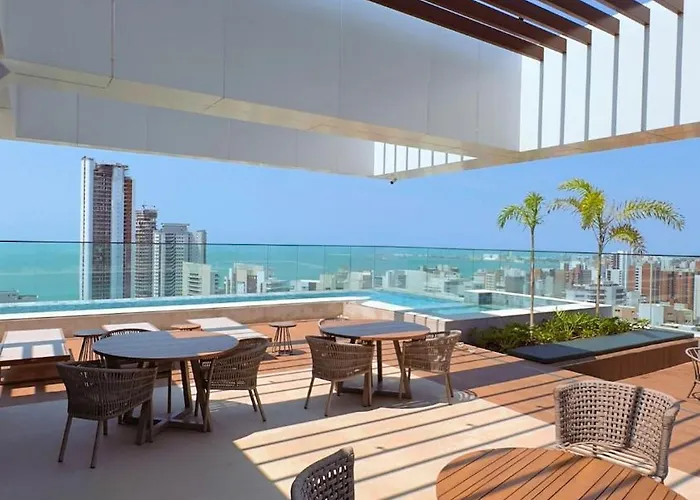 MeirelesCom piscina no último andar e terraço, o Flat Mar Brasil Tropical - Apartamento De 2 Quartos Com Suite E Vista Do Mar Fortaleza de 79 m² está situado no bairro Meireles em Fortaleza, a 13 minutos a…Ver detalhes+de